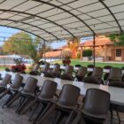 Grande pergola extérieure face à la piscine