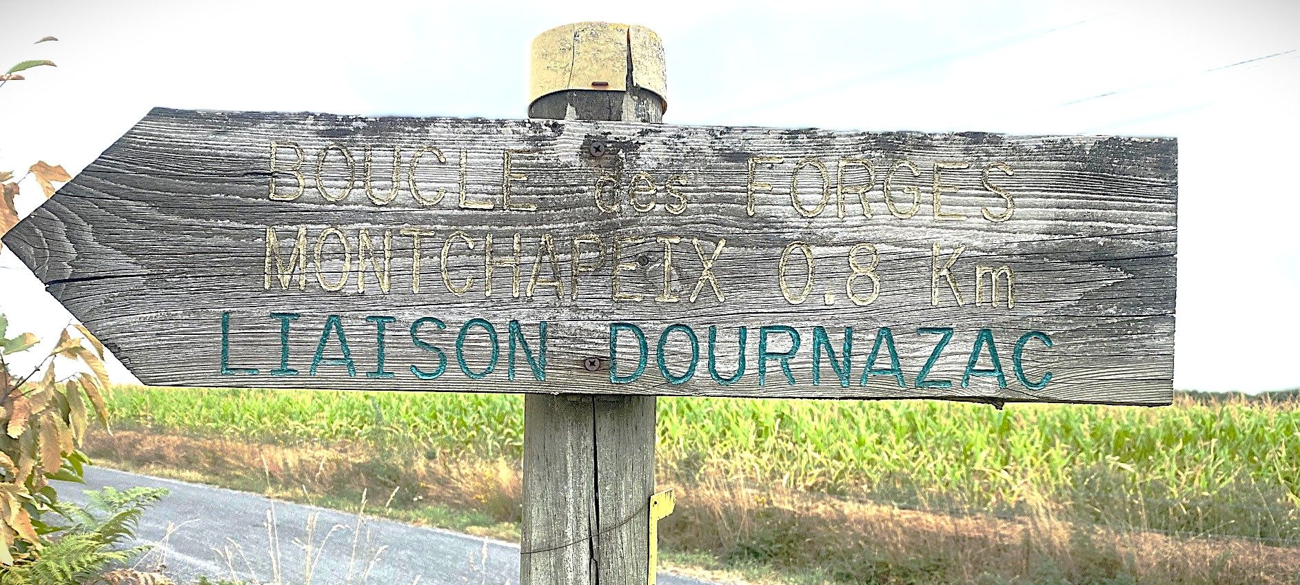 Depuis le panneau d'appel situé sur le parking face à la station essence. suivre à droite la RN21 direction «Boucle des Forges 11.5 km». Passer devant l'église puis au bas de la descente, juste avant le pont sur la Dronne, partir à gauche vers «Monchapeix» - «Pauliac» - «Les Bordes».